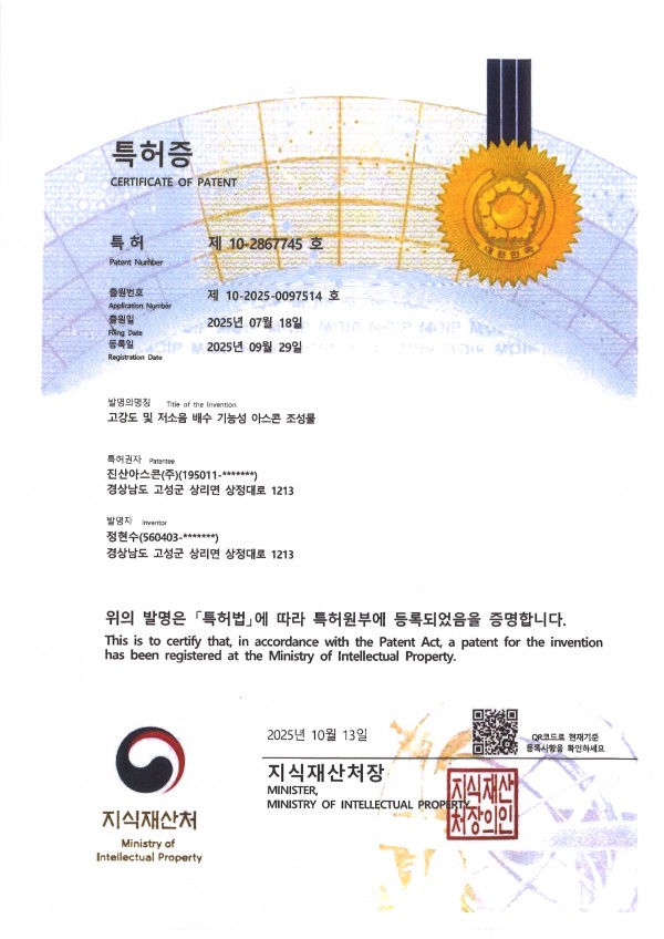 고강도 및 저소음 배수 기능성 아스콘 조성물 > 인증사항